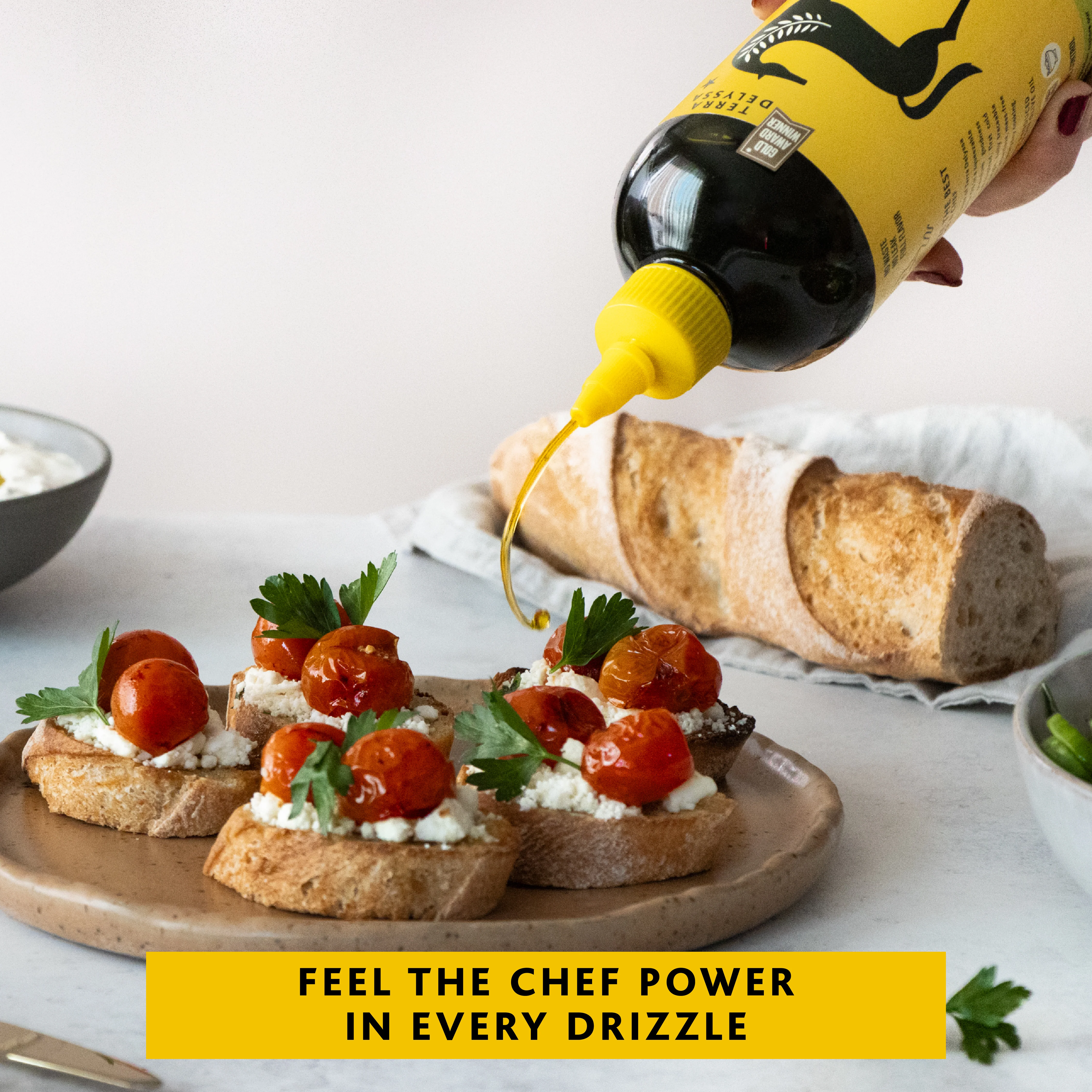 As a multiple gold award-winning oil, Terra Delyssa brings you the finest single-origin extra virgin olive oil that’s fully traceable, mild yet vibrant, and perfect for everyday meals. Now, the ease of the squeeze bottle lets you enjoy the same premium quality with the added convenience of precise drizzling.