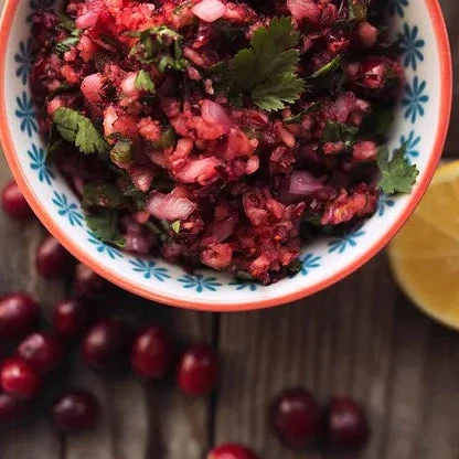 Add all of the ingredients for the Cranberry Meyer Lemon Salsa in a food processor and pulse until coarsely chopped and combined. Salt and pepper, to taste. Let stand at room temperature for around 15 minutes. Stir in freshly chopped cilantro just before serving.